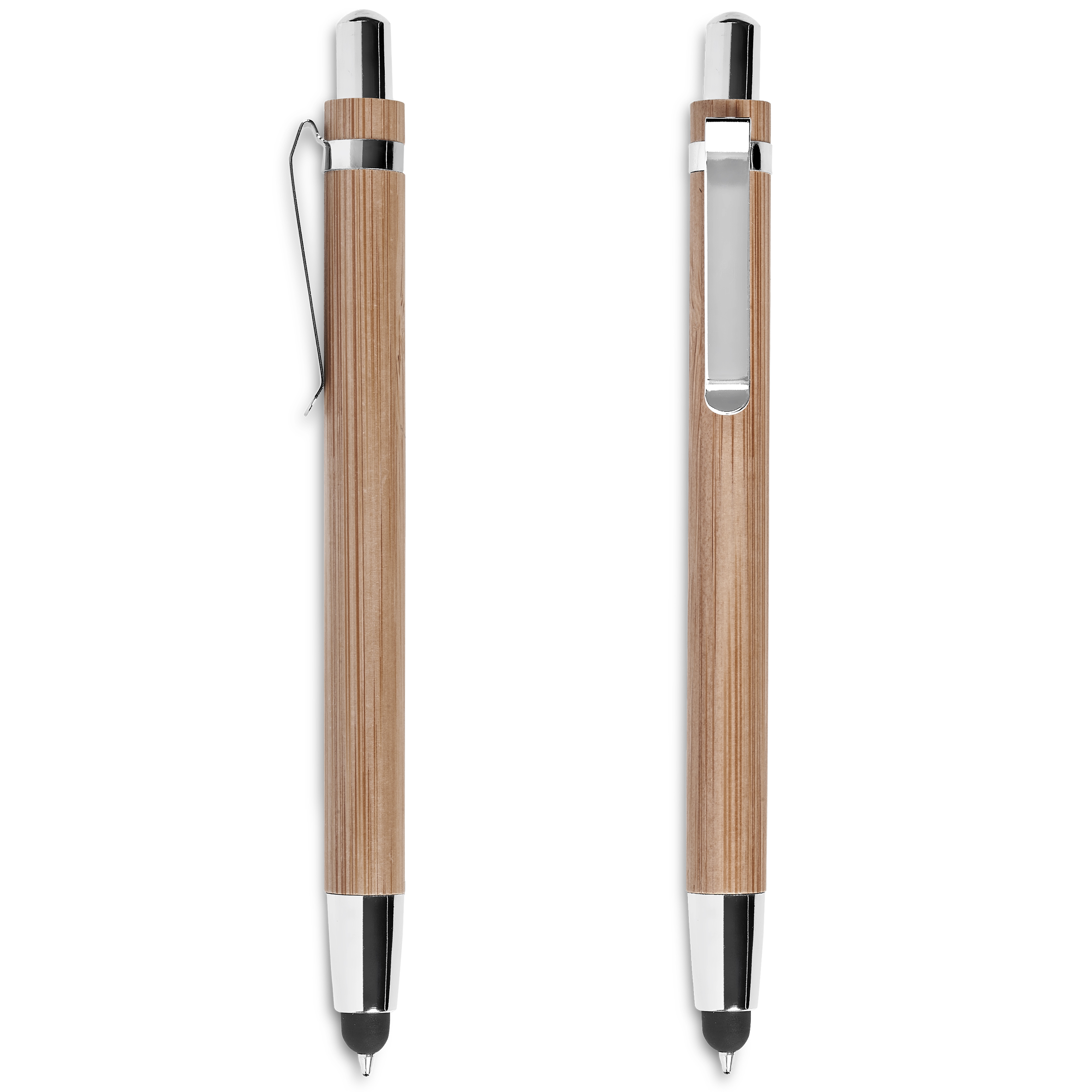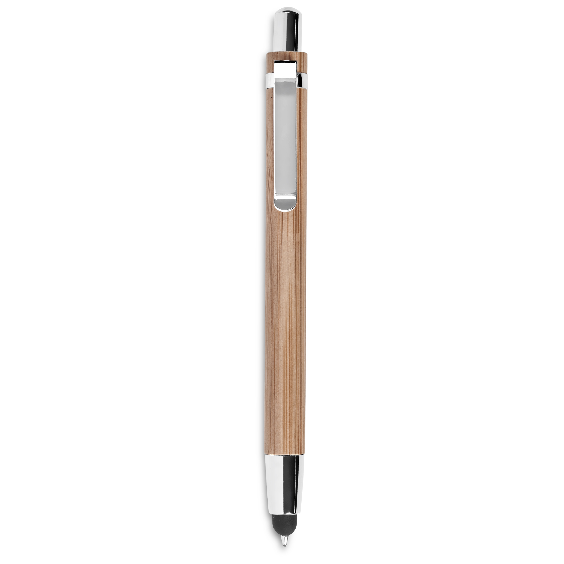 Un superbe stylo et stylet 2 en 1 en bambou respectueux de l’environnement avec des accents métalliques.